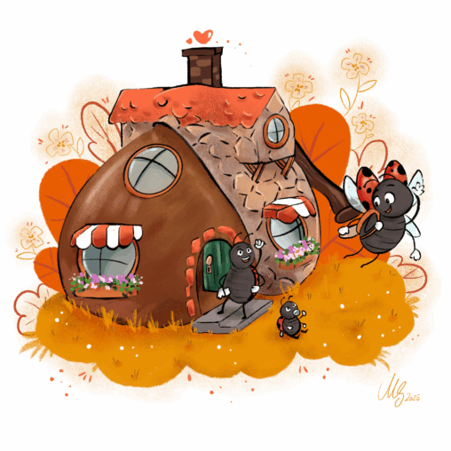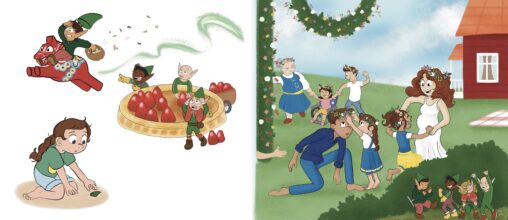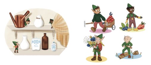 The elves – Vignette and spots for a book project, digital illustration, 2025