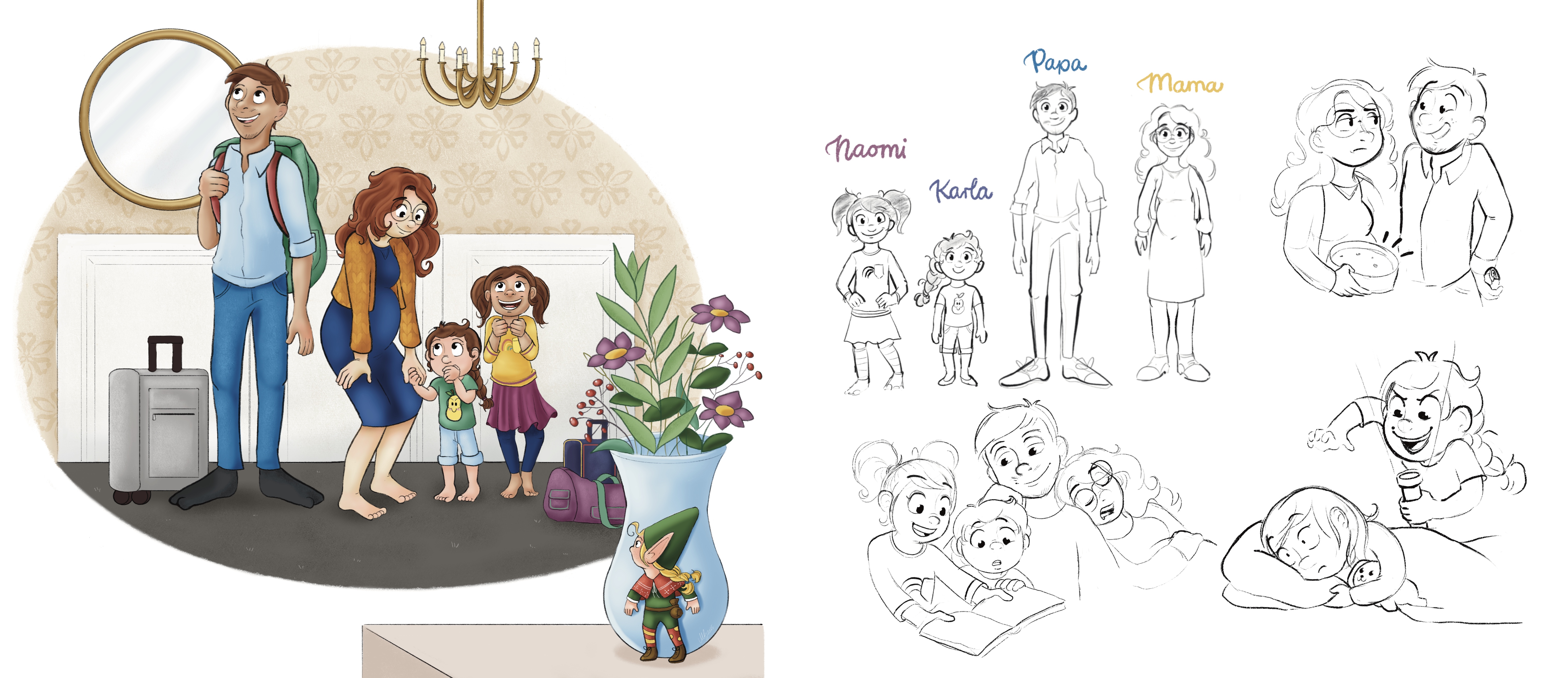 On vacation at last! | Family sketches – Vignette and sketches for a book project, digital illustration, 2025
