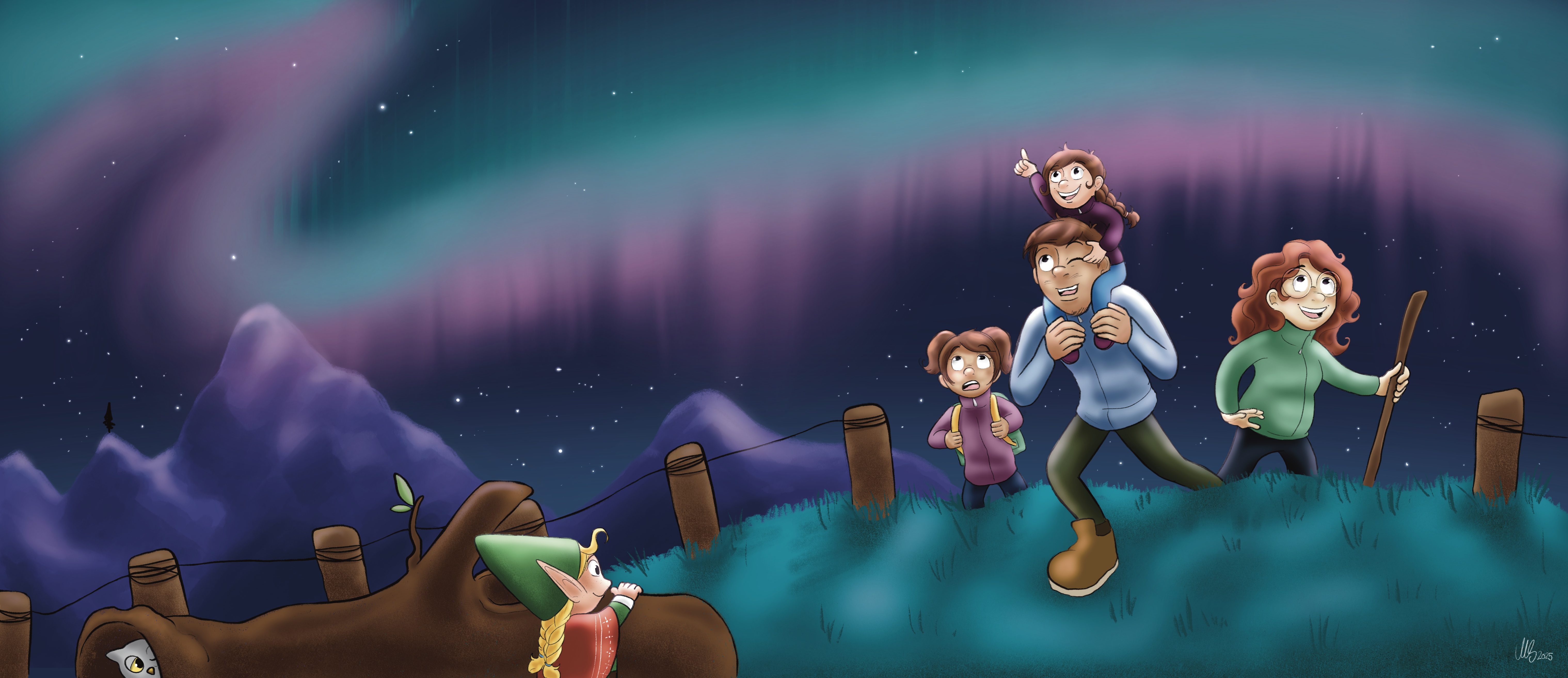 The Northern Lights – Double page spread for a book project, digital illustration, 2025