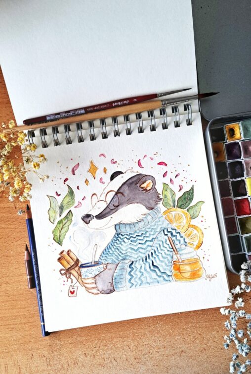 Smilla, Scandinavian Christmas elf, watercolor paper child, 2024